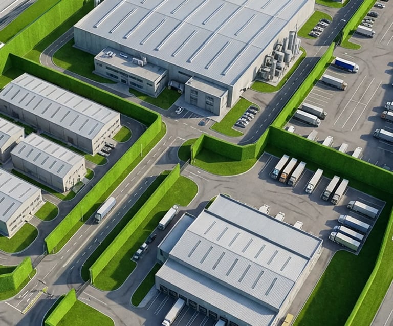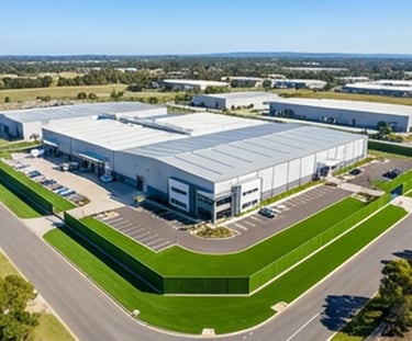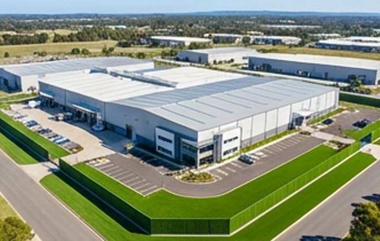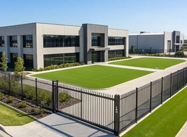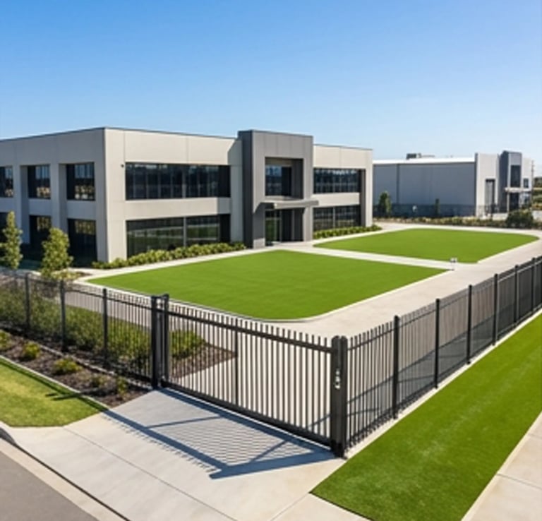 Durable fencing and artificial grass systems designed for factories, warehouses, logistics centers, and large commercial facilities.
